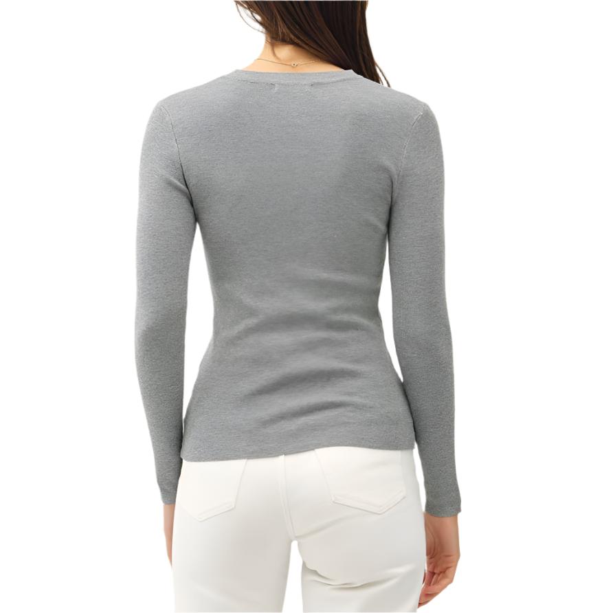 Basic, classic, pullover with crew/round neckline. Long sleeves, fitted with fine ribbed knit, stretchy and soft. Hip length.
