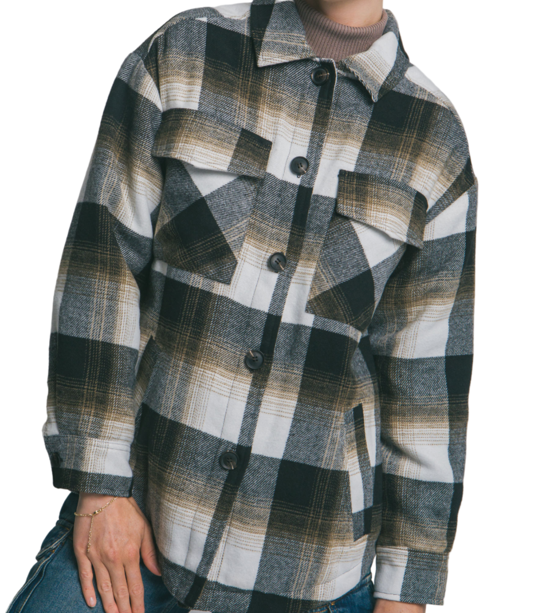 Layer up with effortless style in this striking plaid button-up jacket. Soft sherpa lining wraps you in warmth while the structured exterior keeps your look polished and put-together. Functional side pockets and long sleeves make it as practical as it is fashionable. Perfect for transitional weather, this polyester piece pairs seamlessly with everything in your wardrobe.