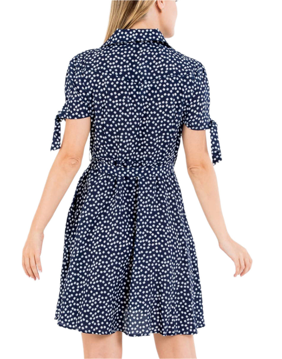 Modern look with our Floral Print Dress. This dress features charming cap sleeves and is made of comfortable polyester fabric, adding a whimsical floral touch to your wardrobe.