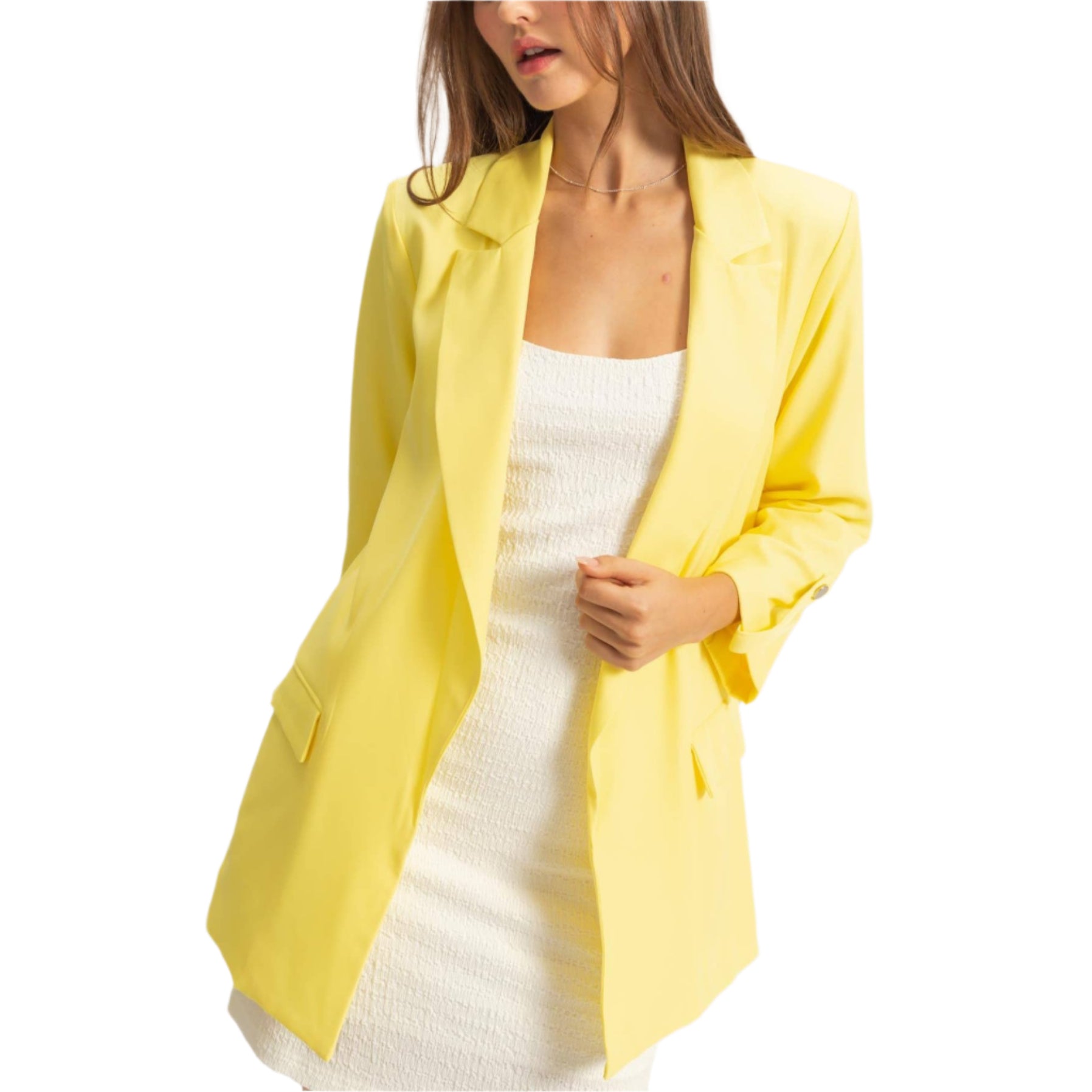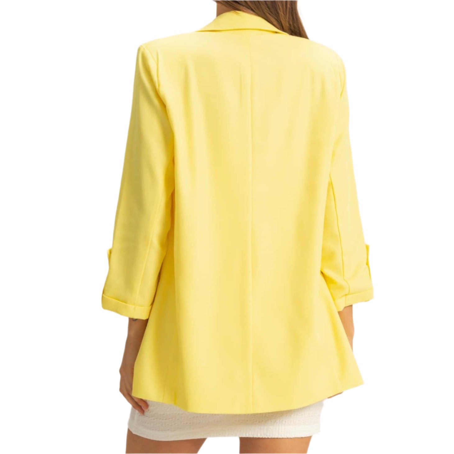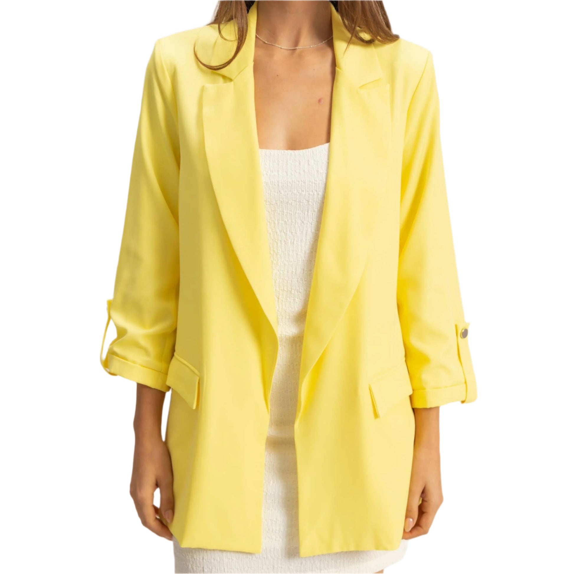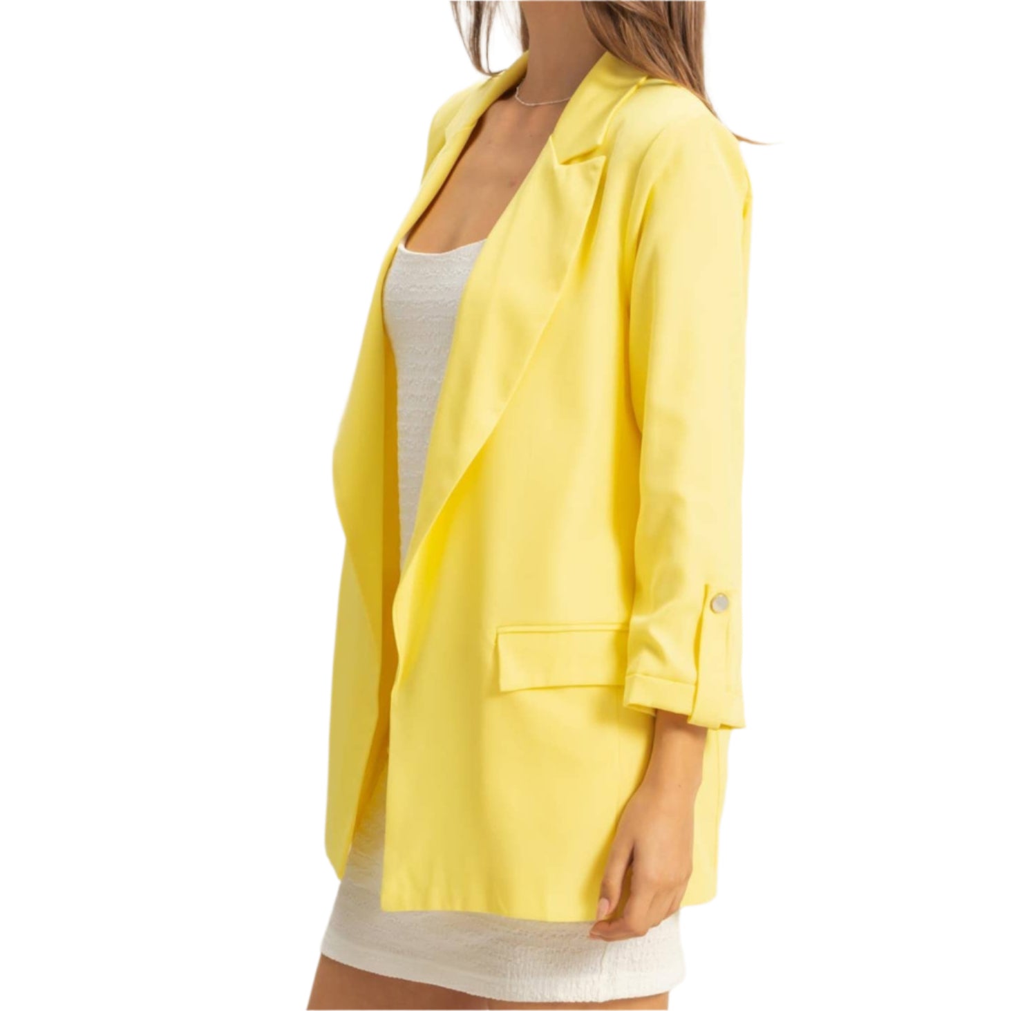 Lemon Roll-Up Three Quarter Sleeve Open Blazer