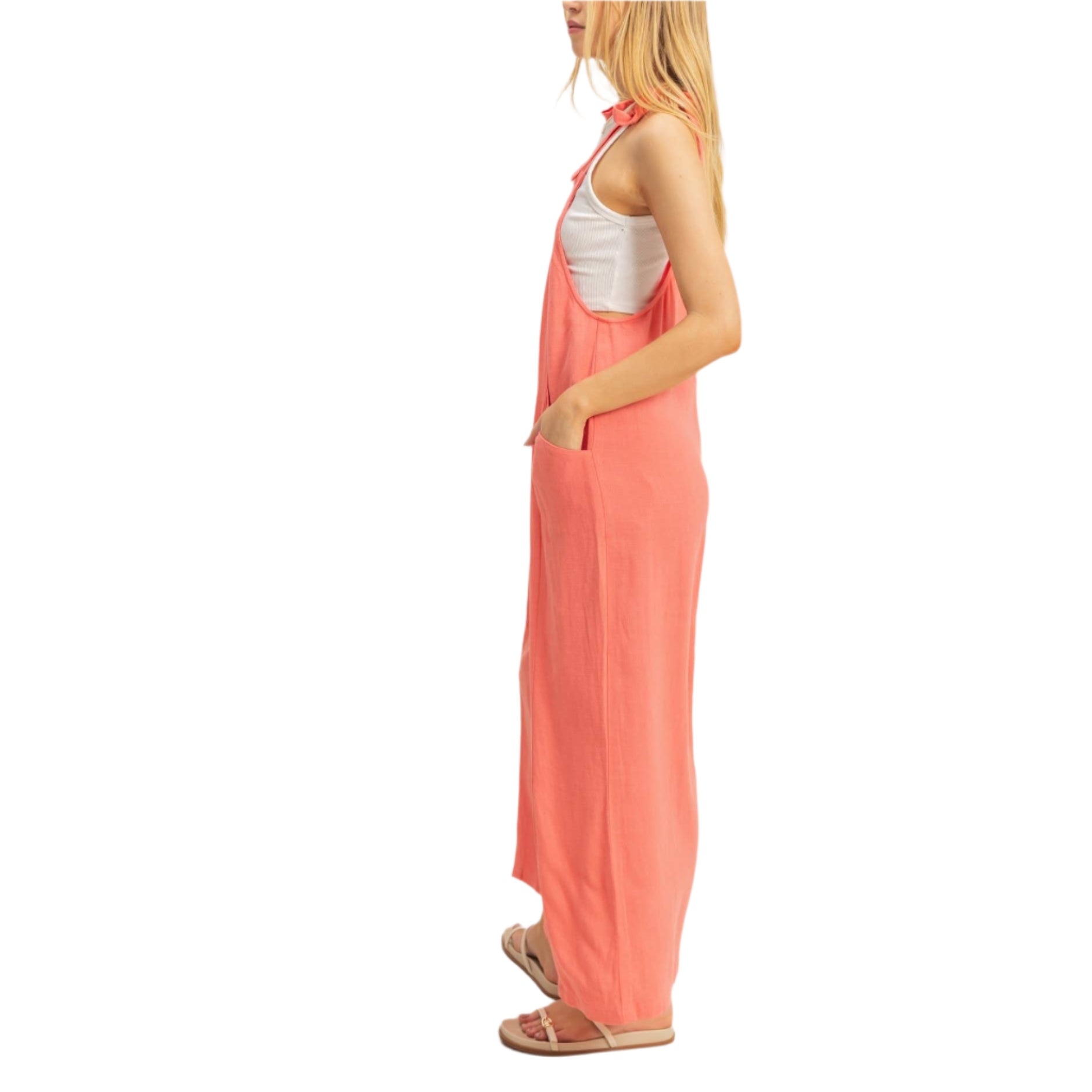 Pink Self-Tie Shoulder Straps Jumpsuit