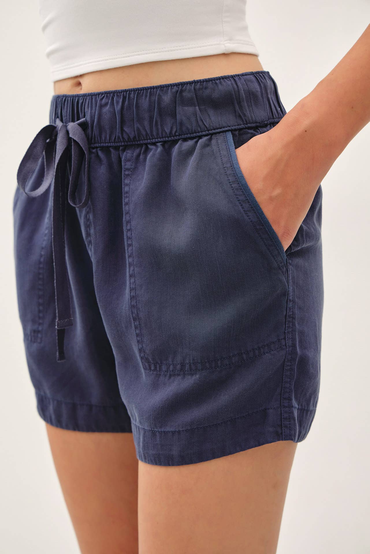 Designed with a high rise fit, pull-on style, elastic waistband, drawstring, and functional pockets, these Tencel shorts are both effortless and versatile for any occasion with their soft feel and shortened inseam.