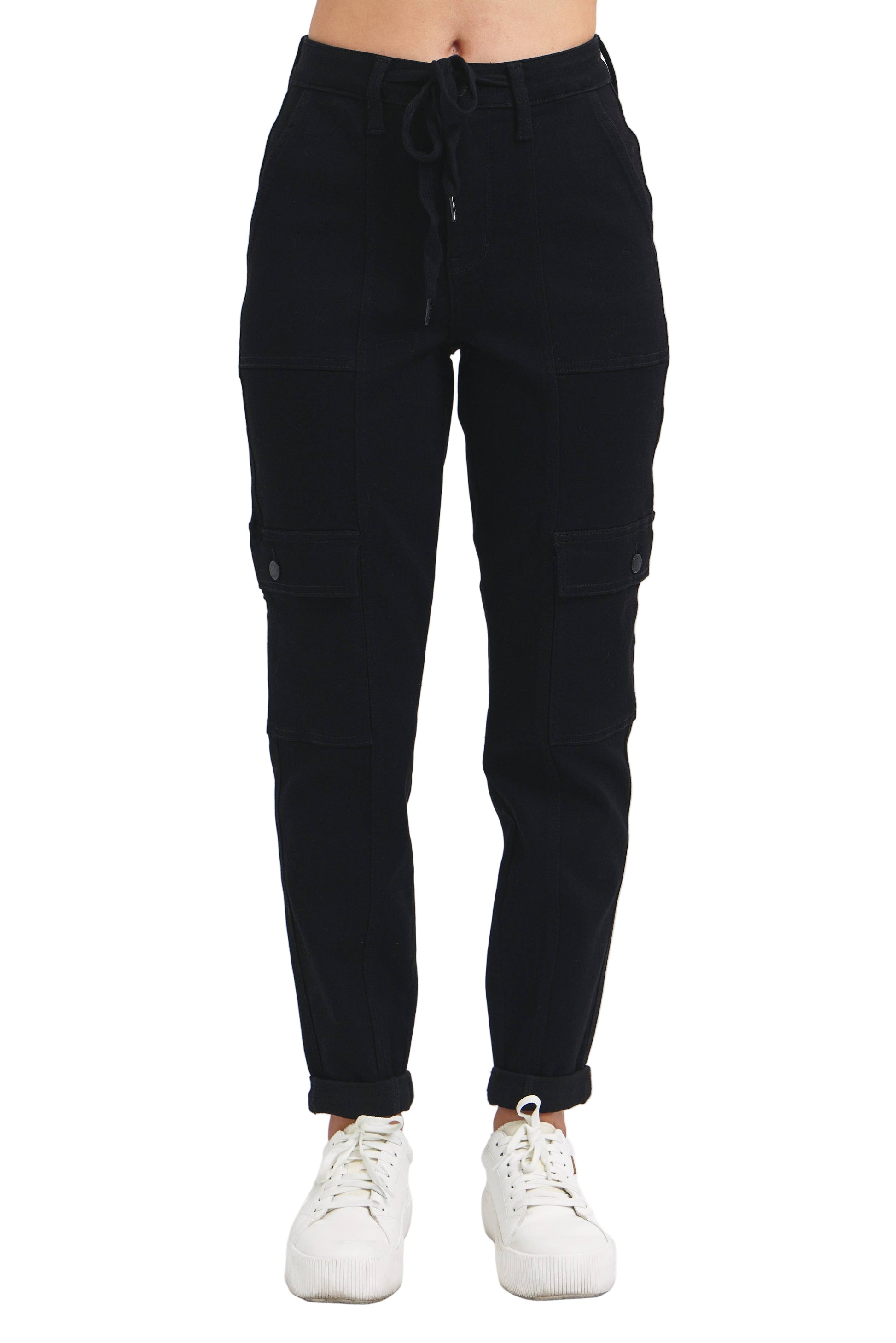 Black Corduroy Jogger with High Waist, Cargo Pockets, and Cuffed Ankles