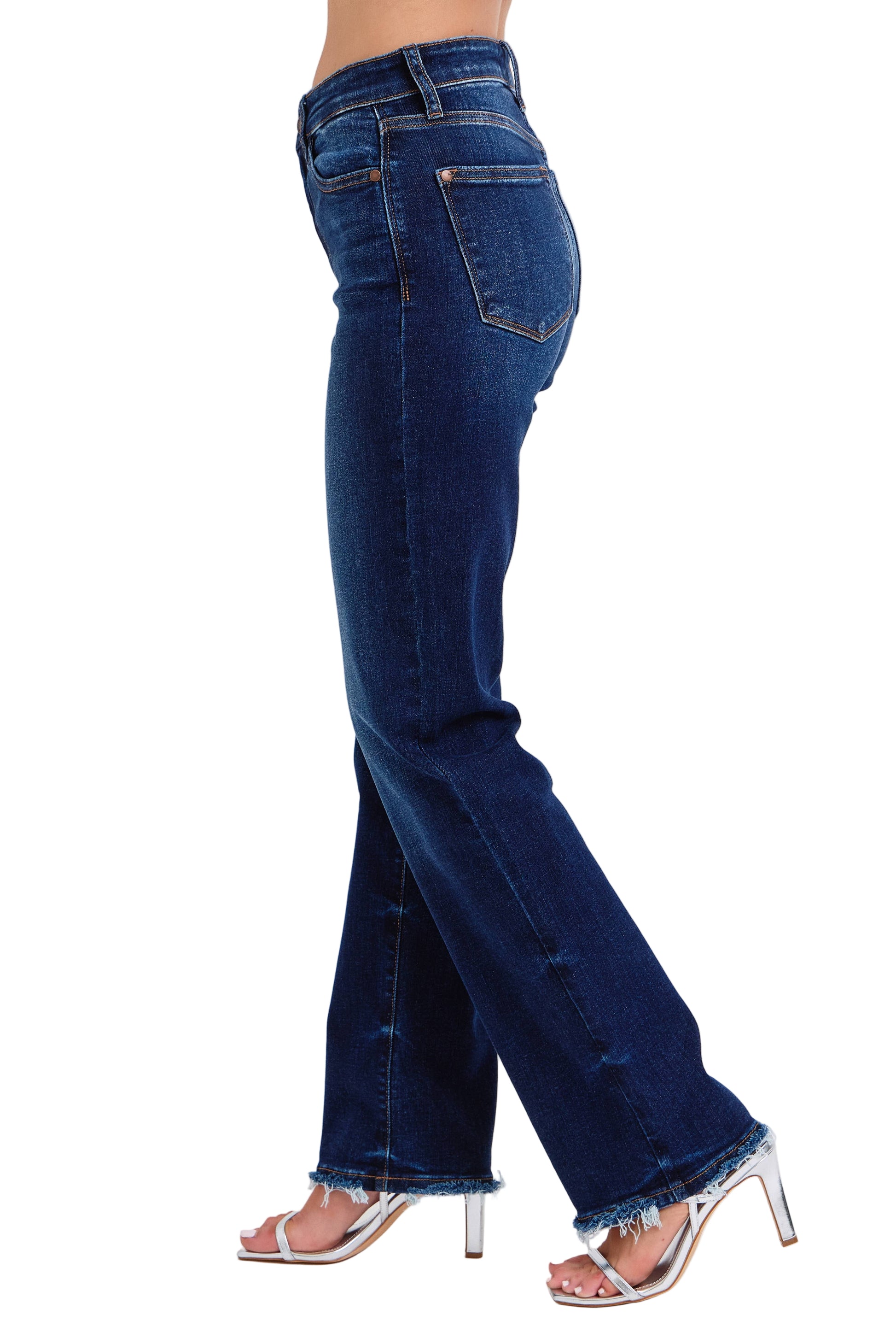 Our Mid Rise Straight Leg jeans with Fray Hem combine classic style with a modern look. Made for comfort and a flattering fit, these Judy Blue jeans feature a unique wash and soft fabric. Perfect for everyday wear, they add a stylish edge to any outfit.