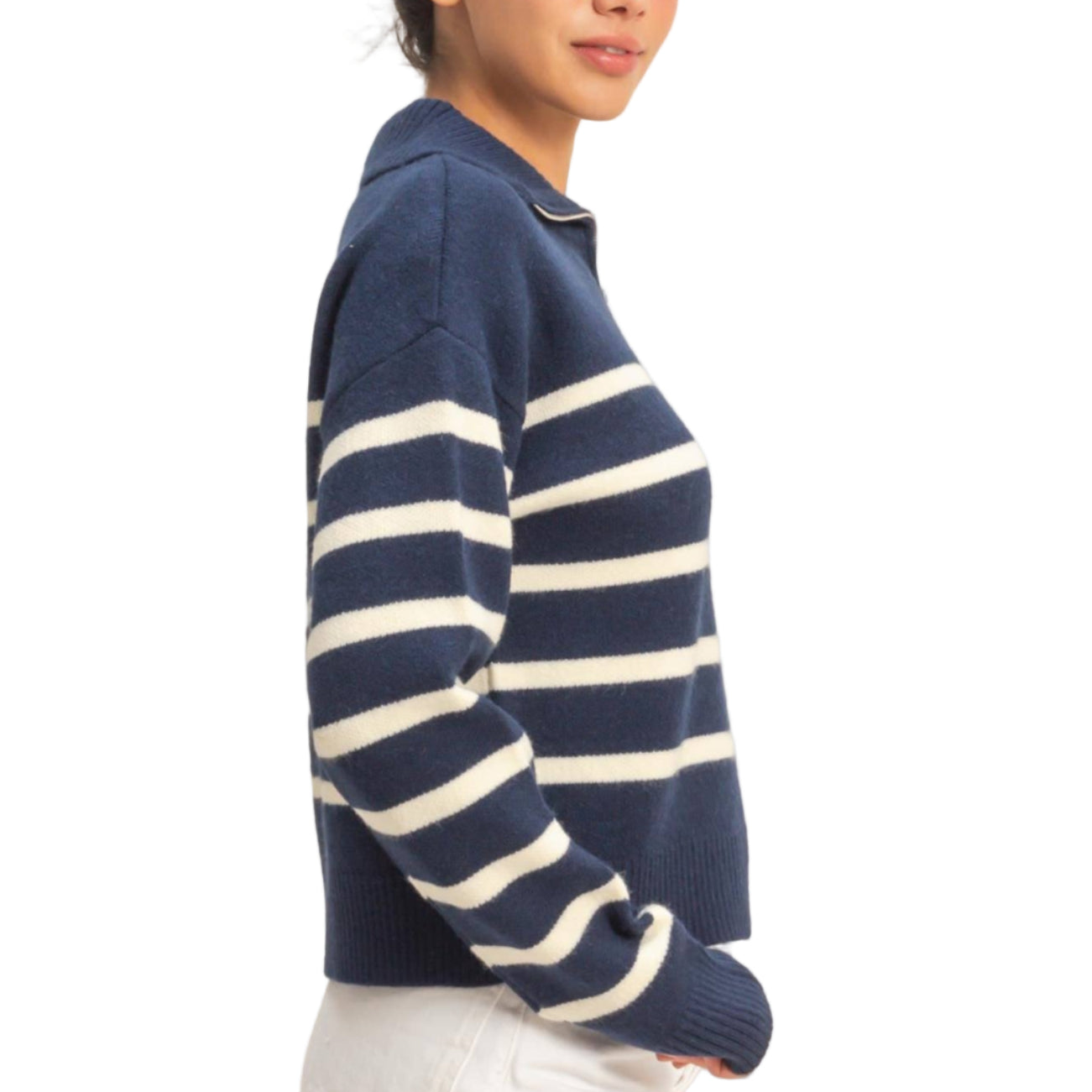 Navy & Cream Striped Sweater